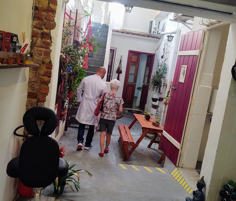 Estamos localizados em frente ao Shopping Tijuca, na rua em frente a saída lateral do Shopping para Av. Maracanã, em um espaço acolhedor, bem equipado em uma casa centenária, acessível para atender suas necessidades.