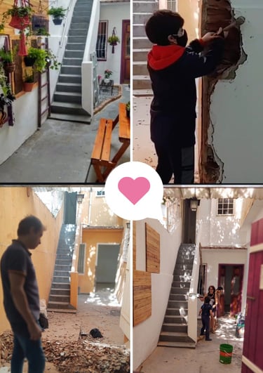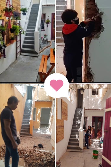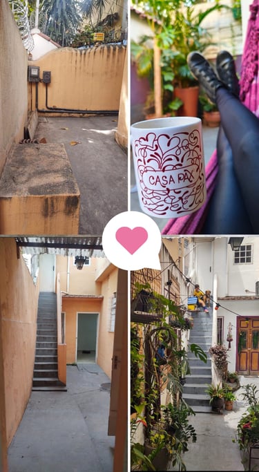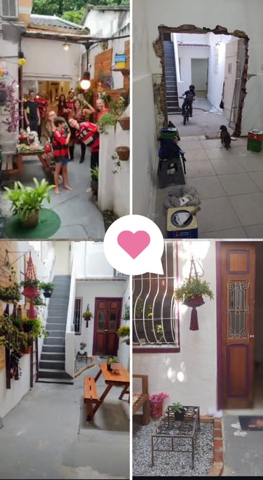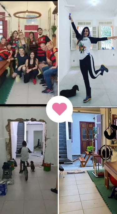 Contrato assinado em 48 horas, e então já começamos os investimentos possíveis para nossa adequação. Muito trabalho, e para minha sorte eu não estava só! Estava ao lado da minha família! Derruba parede daqui, emassa dali, pinta, restaura, preserva a identidade da casa, sobe muro, investe em segurança, com direito até a rede e muitas plantas! E pronto! 2 meses depois seguimos reescrevendo uma nova temporada! Me diverti bastante no caminho. Contei com meu marido, meu filho lindo, minha mãe, meu irmão, Índia, Marcia e com pedreiros que vinham literalmente bater na porta pedindo por trabalho. Aproveitei a oportunidade de mostrar para meu filho "como se faz"! Como se reinventa em tempos difíceis, o valor e um propósito e como é bom ter por que lutar. ✨